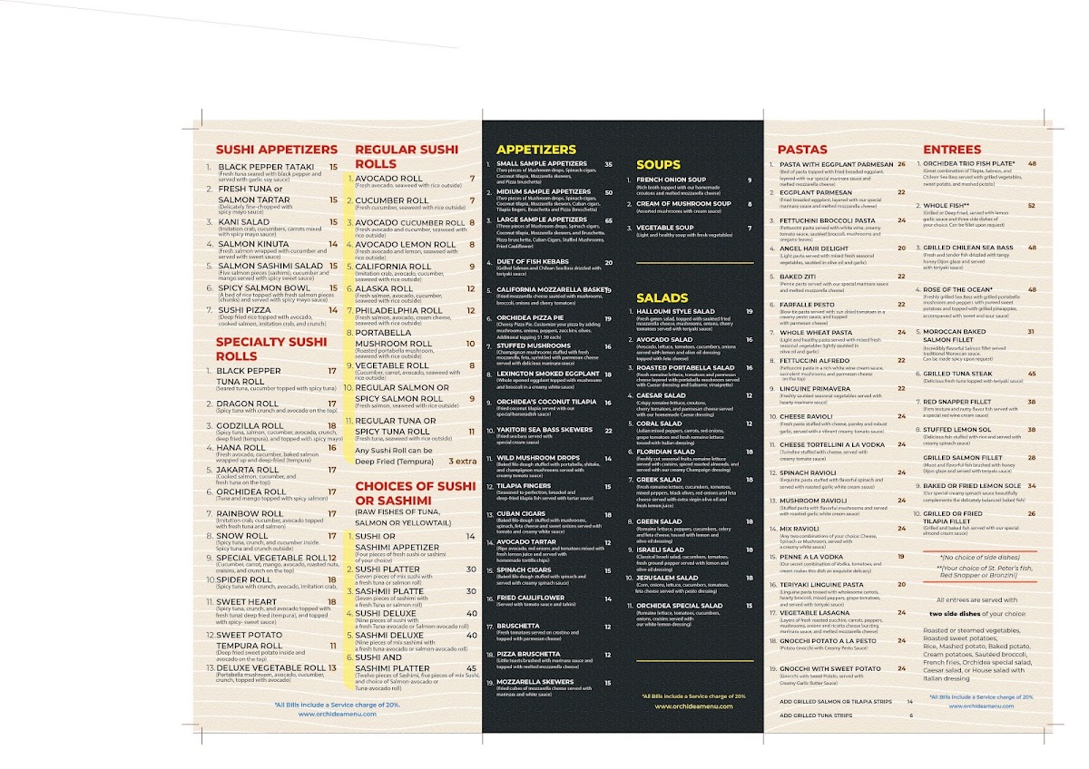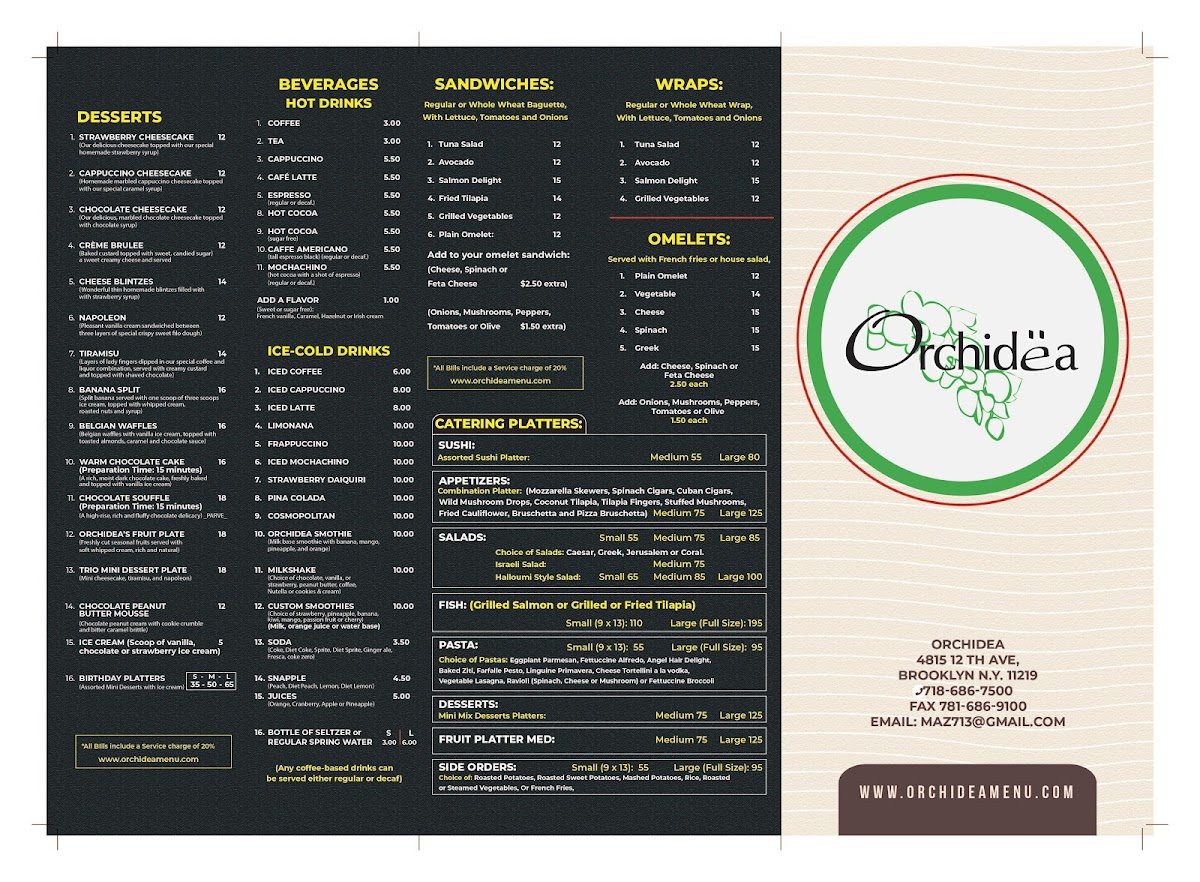 Introducing the menu at Orchidea, a premier upscale kosher dairy restaurant located in the vibrant Boro Park neighborhood of Brooklyn. Known for outstanding customer service and a warm atmosphere, this culinary gem offers a delightful array of dishes that promise a memorable dining experience.